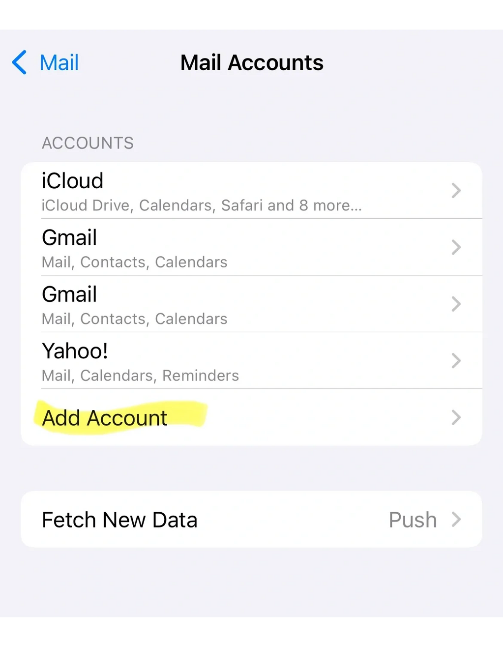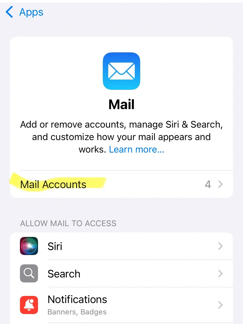 1. Go to settings- Apps - Mail and select Mail accounts.